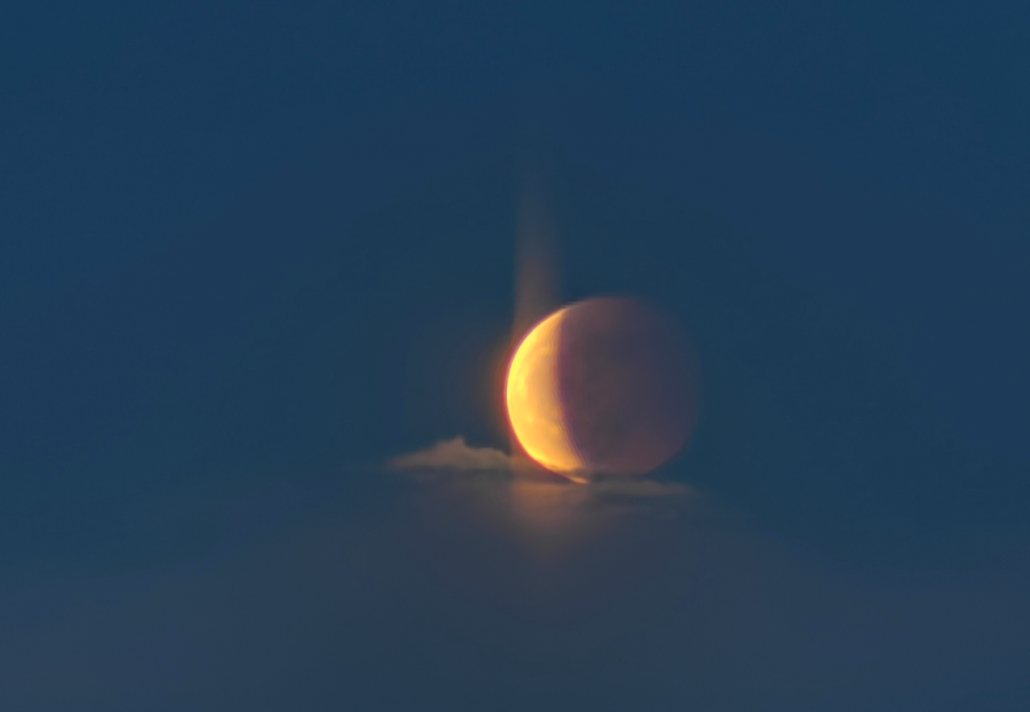 ↑这是天津市天文爱好者王强5月26日晚拍摄的“超级月全食”照片。(王强本人供图)