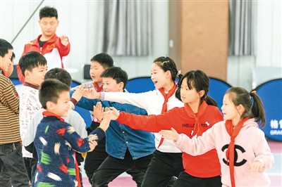 安徽省合肥市肥东县实验小学的学生在“三点半课堂”上进行击剑技术练习。阮雪枫摄(人民视觉)
