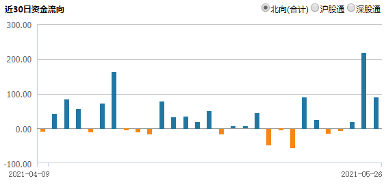 伴随着人民币走强,近一段时间以来,互联互通机制下的北向资金出现了持续大幅净流入的情况。Wind统计数据显示,5月26日,北向资金净买入91.03亿元,其中沪股通净买入69.78亿元,深股通净买入21.25亿元。而就在此前一天的5月25日,北向资金大举净买入217.23亿元,刷新了互联互通机制开通以来的历史新高。仅两个交易日以来,北向资金净买入规模就超过了300亿元。