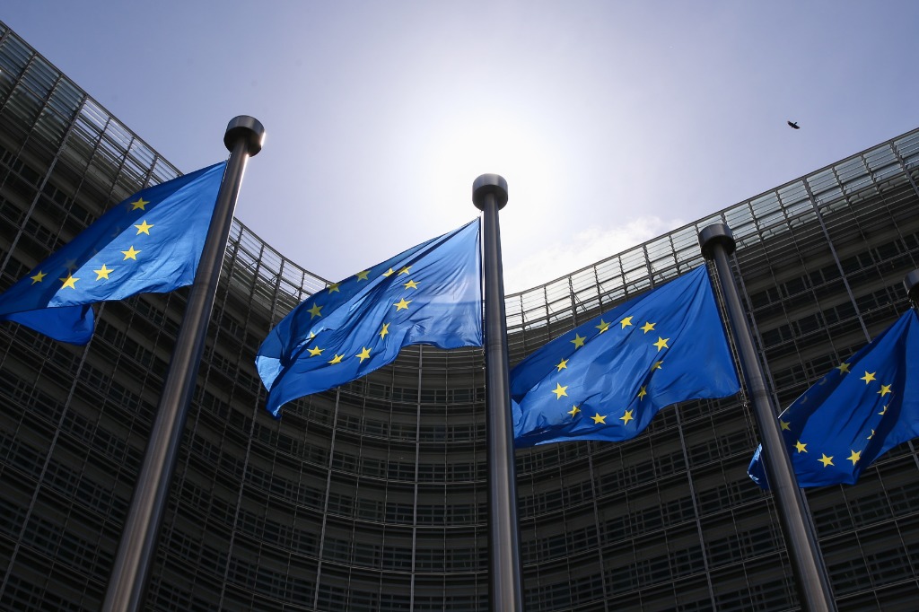 5月21日,欧盟旗帜在比利时布鲁塞尔的欧盟总部外飘扬。(新华社记者郑焕松摄)
