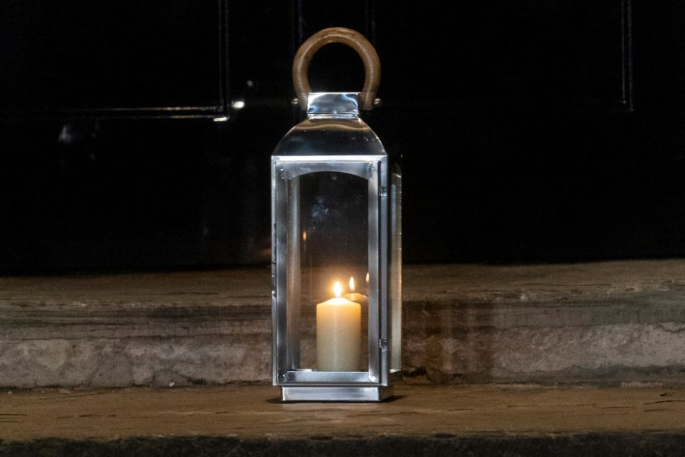 3月23日晚,一盏蜡烛灯摆放在英国伦敦唐宁街10号首相府门前。英国政府宣布把3月23日定为“全国反思日”,各地纷纷举行纪念和反思活动。(新华社发,雷伊·唐摄)