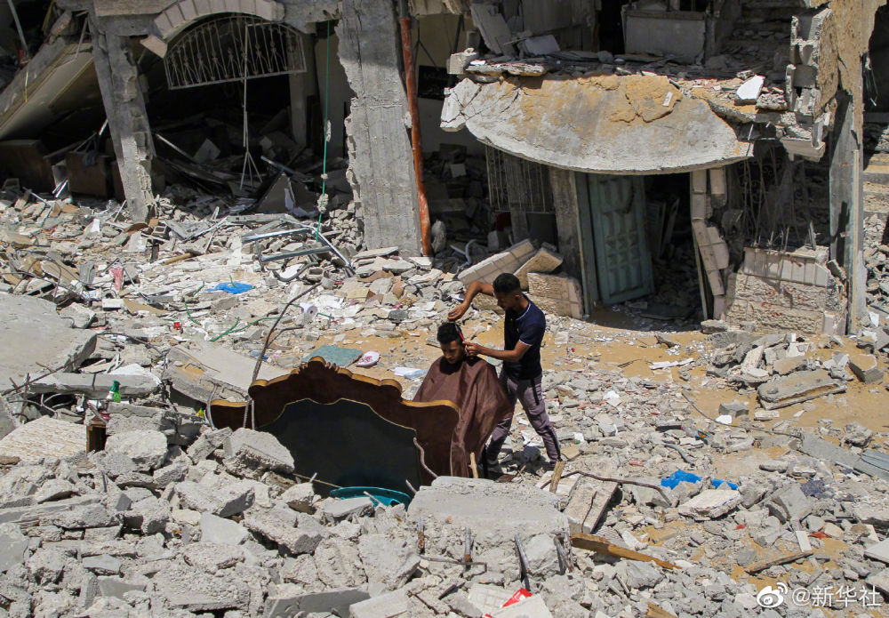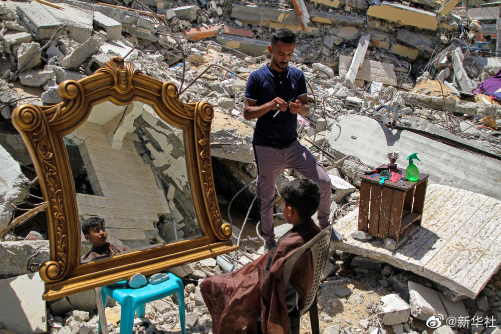连日来,巴勒斯坦加沙地带武装组织与以色列发生严重冲突。在加沙地带北部的城镇贝特拉希亚,阿卜杜拉·扎瓦拉找来了一面镜子,一把塑料椅子,和一些简单的理发工具,他要在废墟上重新为自己的顾客免费服务。