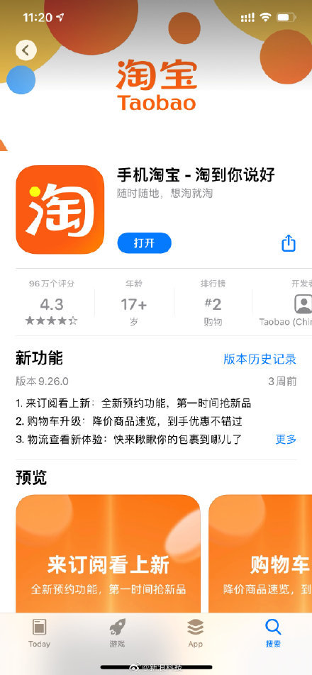 @新浪科技 发现,手机淘宝App的名字已经悄然变为了“淘宝”,目前各大应用商店均已启用新名字。App图标下方文字也更新为了“淘宝”。最近淘宝接连更换App和Logo,但网友均表示:看不出改了个啥。