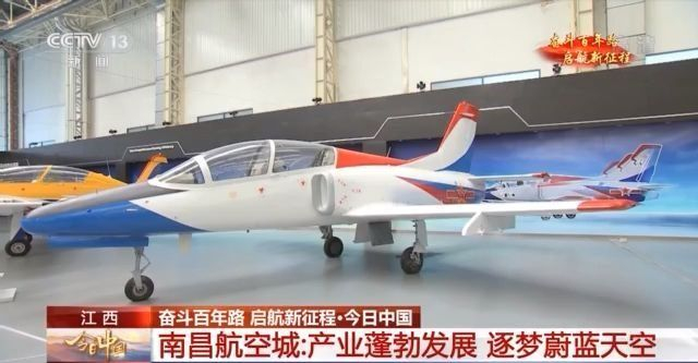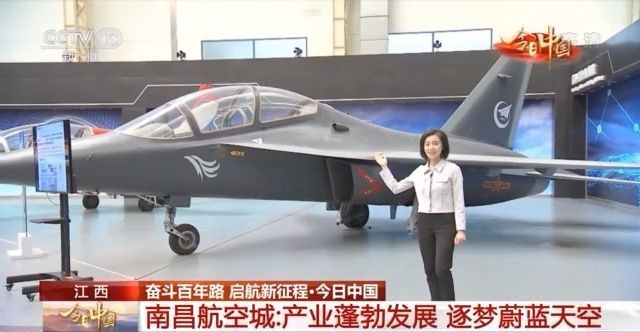 我们再来看这架飞机呀,看一看外观您是不是非常具现代感呢,它是我国第一款自主研制、拥有完全自主知识产权,并且达到世界先进水平的第三代高级教练机—猎鹰L15。从初教-5的诞生到今天,经过将近70年的发展,江西已经成为全国教练机、直升机的核心生产基地。
