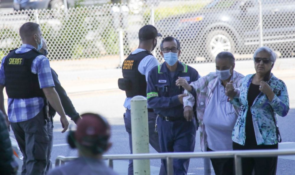 5月26日,在美国加利福尼亚州圣何塞,人们在枪击事件后前往临时设立的安全地点。(新华社发,董旭东摄)