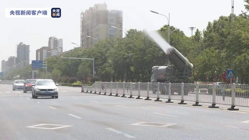 5月27日下午2点,石家庄城区天气晴朗,气温达到35℃。在邢台市南和区也出现了35℃的高温天气,市政部门加密了城区喷雾洒水的次数,来降低地表温度。