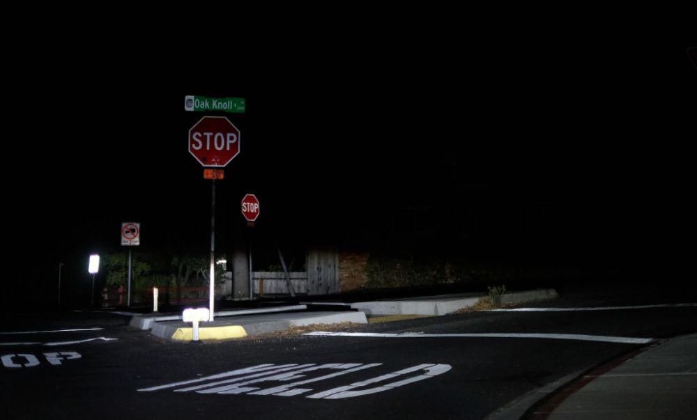 2019年10月28日,在美国加利福尼亚州旧金山湾区的雷德伍德城,山区的一处居民区停电。(新华社记者吴晓凌摄)