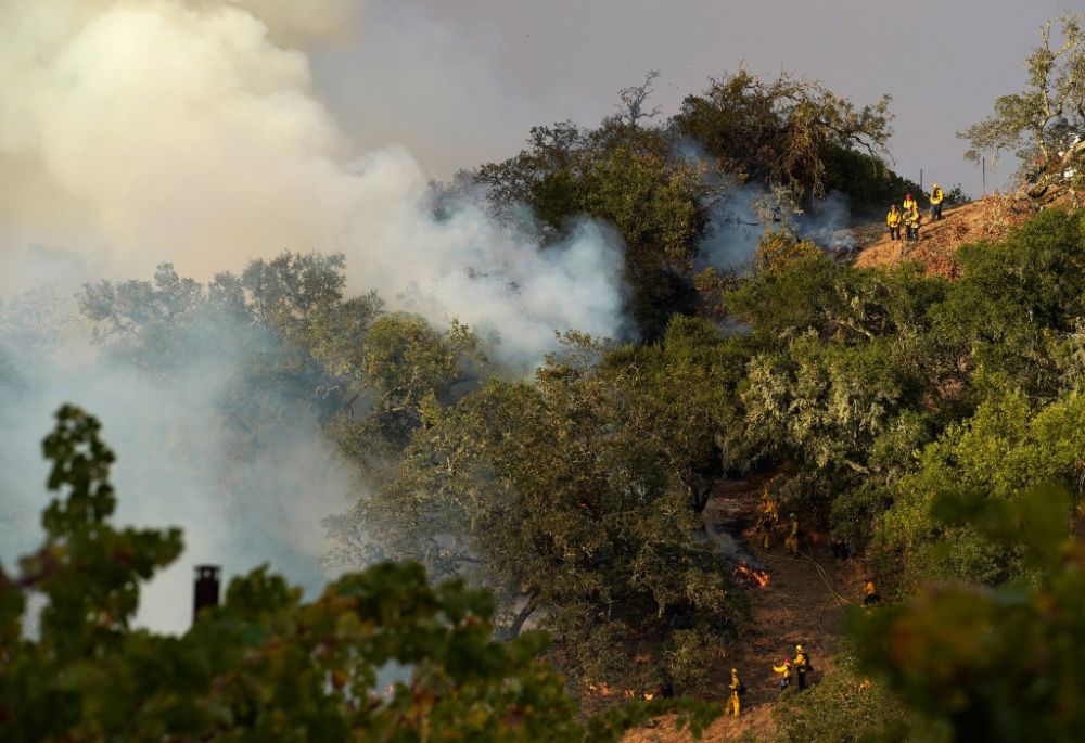 2019年10月24日,在美国加利福尼亚州北部索诺马县,消防员在灭火。(新华社发,李建国摄)