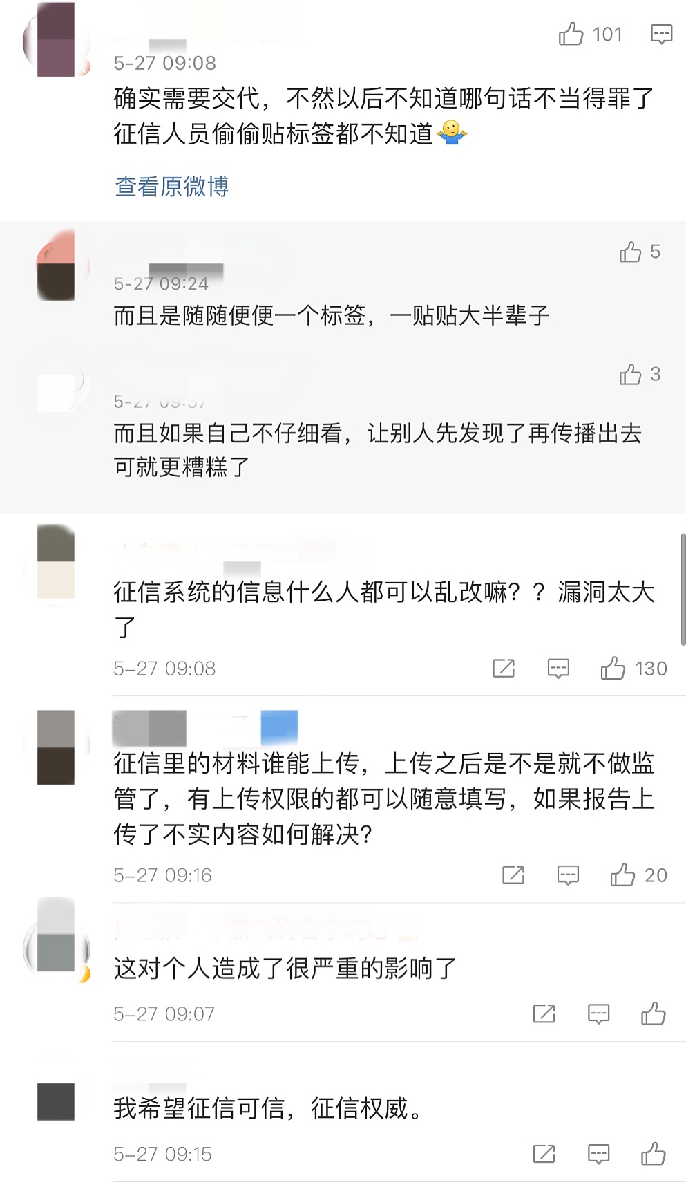 “哪个环节存在疏漏”成网民关注话题。网民说,在一系列事件的处理过程中,金融机构人员是否缺乏责任意识?征信填报、授权查询是否存在管理漏洞?征信机制需要如何完善?“一删了事”不是事件的结束,希望相关部门尽快查清、及时回应网民关切,不仅要对涉事金融机构严肃追责,也要关注事前预防机制的完善。