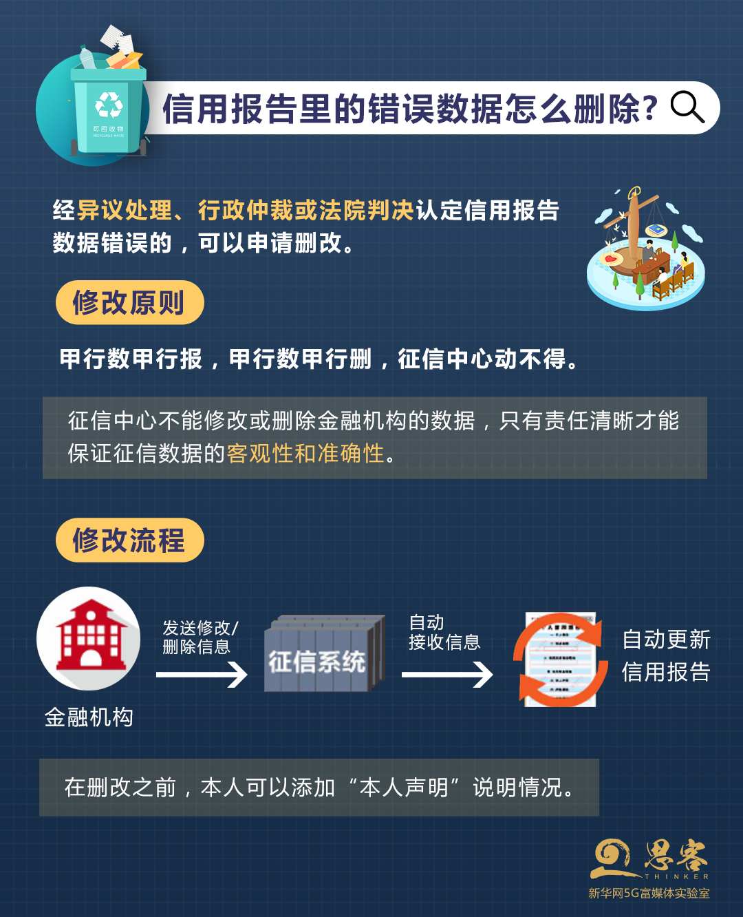 个人信用报告是个人信用历史的客观记录,从刷信用卡到贷款买房,个人信用报告关乎每一个人的切身利益。截至2020年12月底,征信系统共收录11亿自然人、6092.3万户企业及其他组织,其权威性、严肃性不言而喻。这张公民的“经济身份证”,一个字都多不得、少不得、错不得,任何人都不能随意涂抹信用报告。