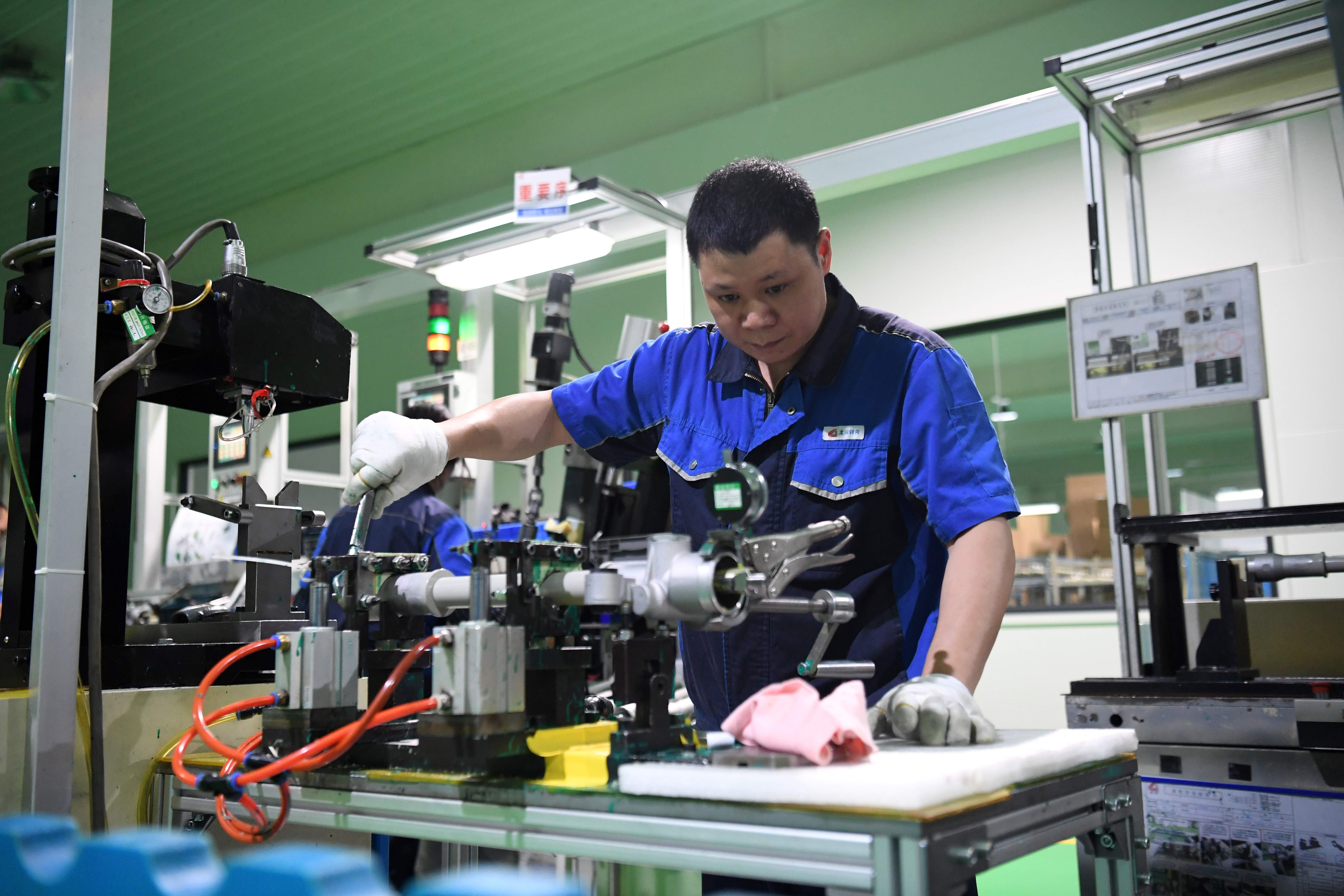 5月7日,工人在位于重庆璧山的龙润汽车转向器生产车间内工作。新华社记者 唐奕 摄