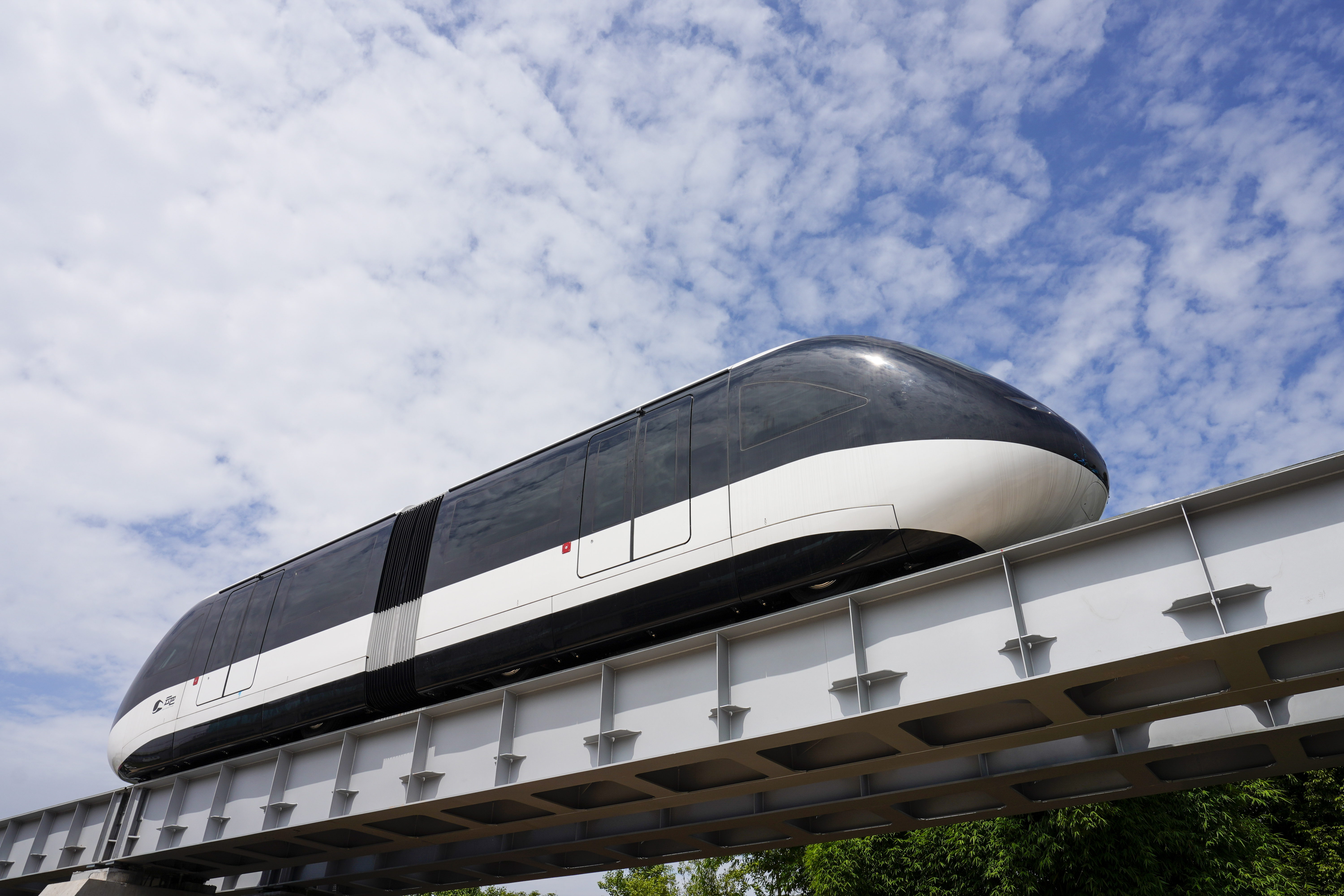 2020年6月3日,一台“云巴”在专用运行轨道上进行调试。新华社记者 刘潺 摄