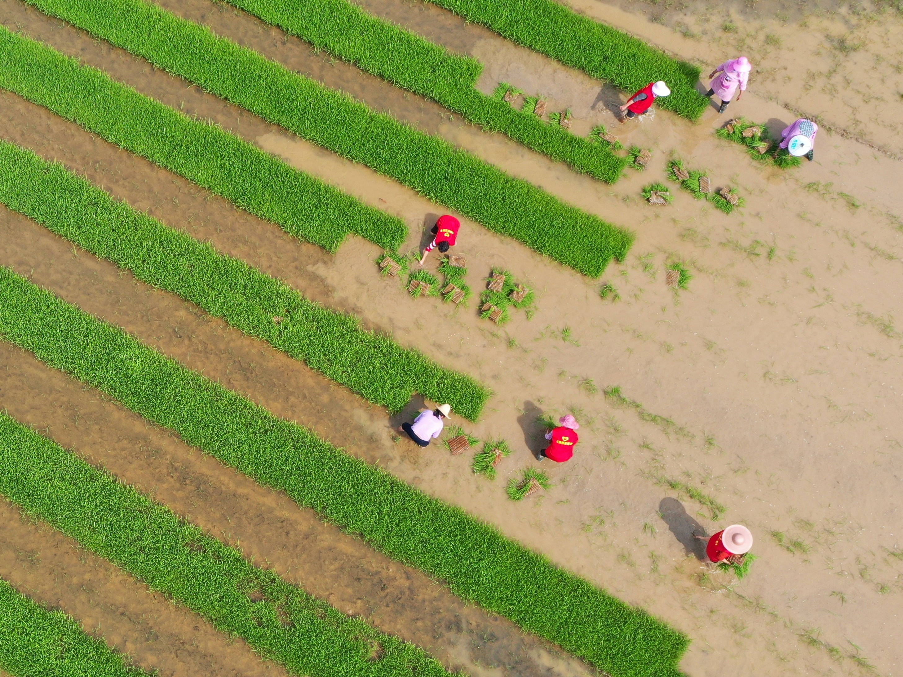 兴国县长冈乡的党员志愿服务队正在帮助农户移栽秧苗。(新华社发)