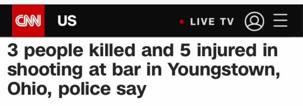当地时间23日凌晨,该州扬斯敦市一家酒吧发生枪击事件,造成3死5伤。