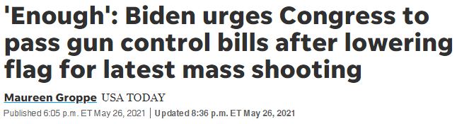 今年以来拜登多次下达的“降半旗”总统令部分回答了这个问题。除了新冠肺炎疫情夺走的数十条万生命,不断累加的枪下亡魂也成了星条旗一次次被降下的痛心理由。