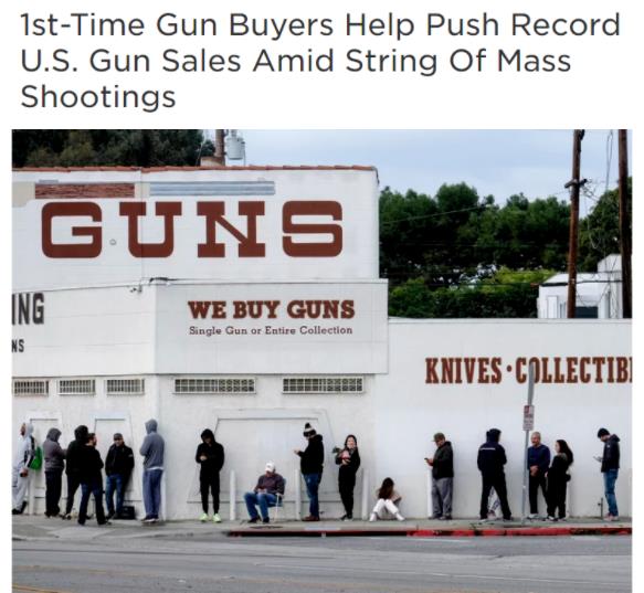 更多的枪支导致更多的枪击事件发生,反过来,人们越是觉得不安全就越有买枪自保的冲动。自今年3月亚特兰大等地发生一系列大规模枪击事件后,初次买枪的美国人大幅增加。