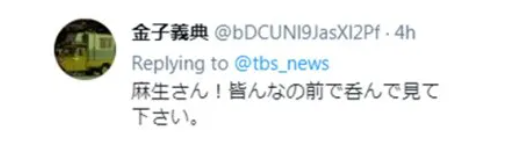 △日本网友:“麻生桑,你当着所有人的面喝一个看看!”