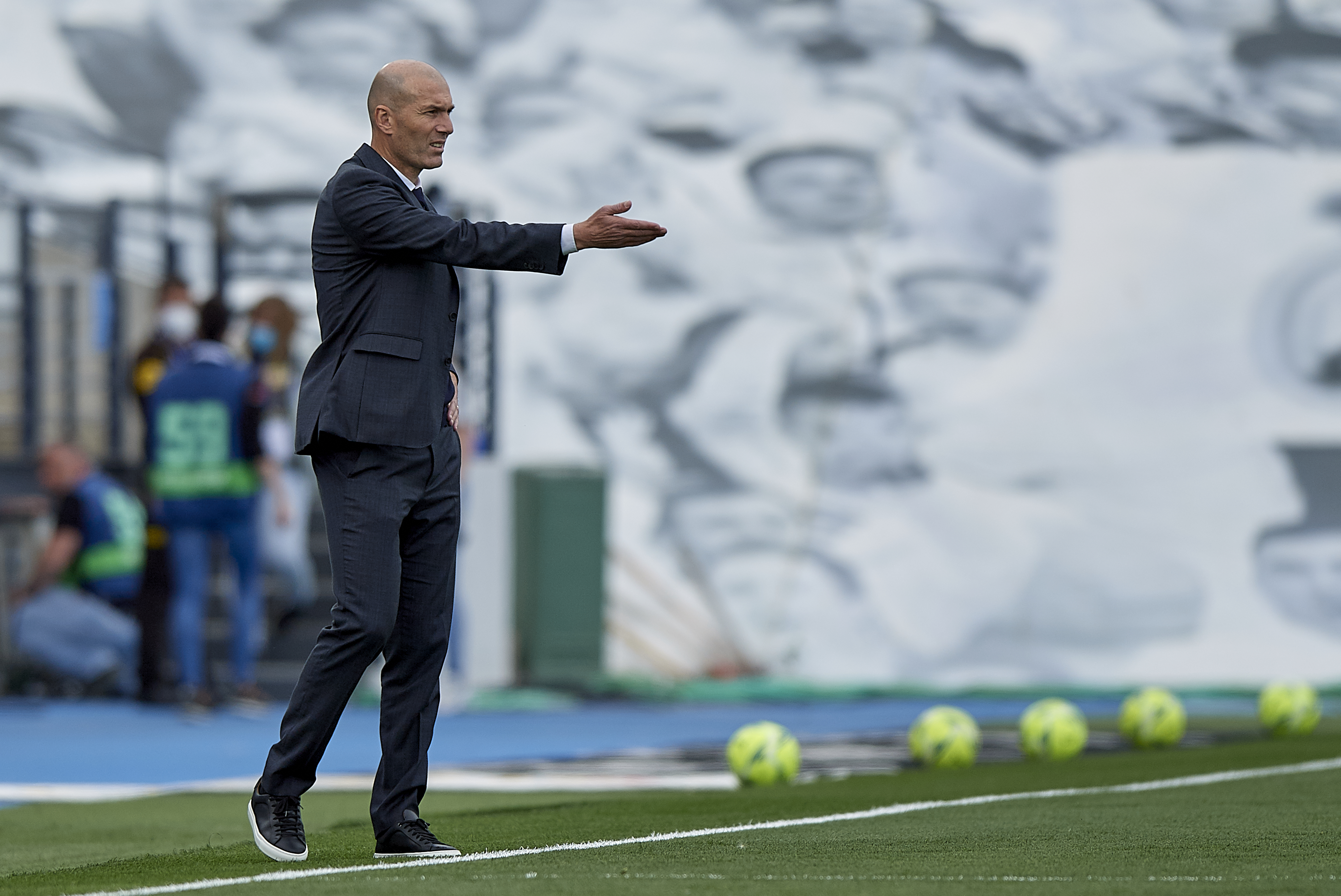 资料图:齐达内在比赛中指挥。新华社发(帕布罗·莫拉诺摄)