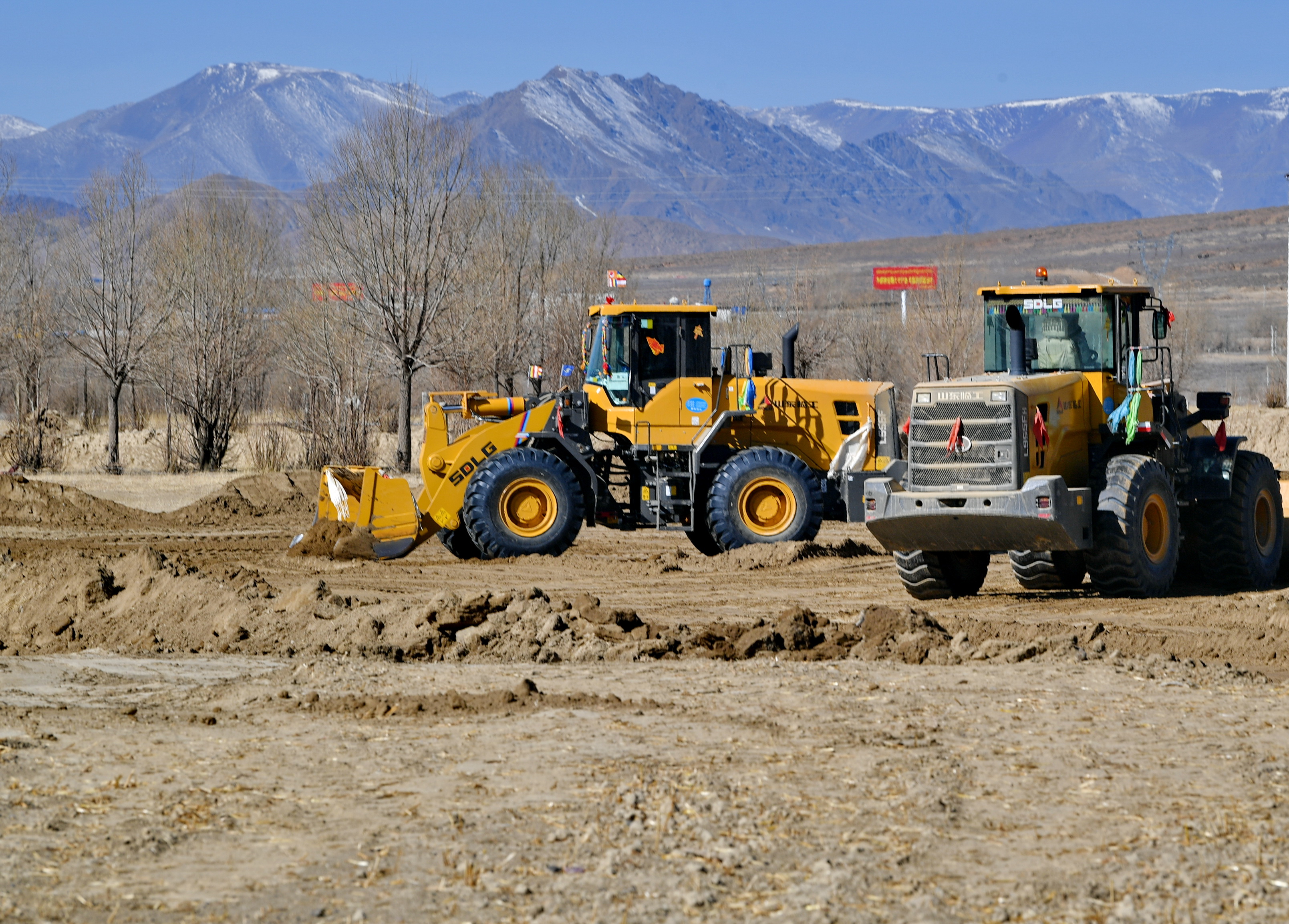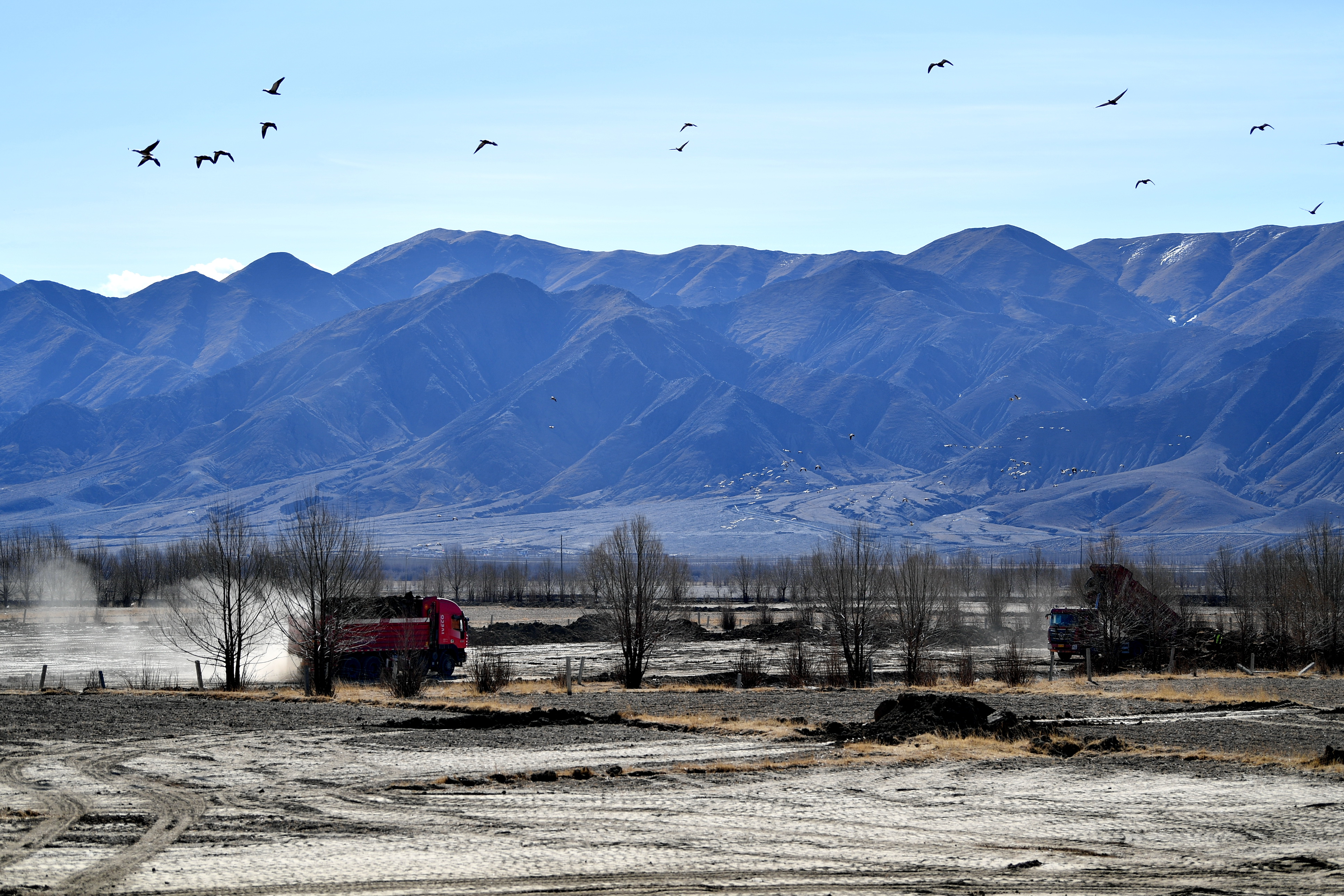 日喀则市桑珠孜区那塘村,高标准农田项目施工现场(2020年3月1日) 新华社记者张汝锋 摄