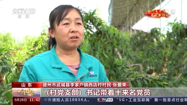 山东省德州市武城县李家户镇西店村村民 张爱荣:原先咱这道也不好走,销路也没打开,村党支部书记带着十来名党员给咱做动员,把这个道给修好了。又给发展的电商平台,现在二亩地一年(挣)十来万块钱。