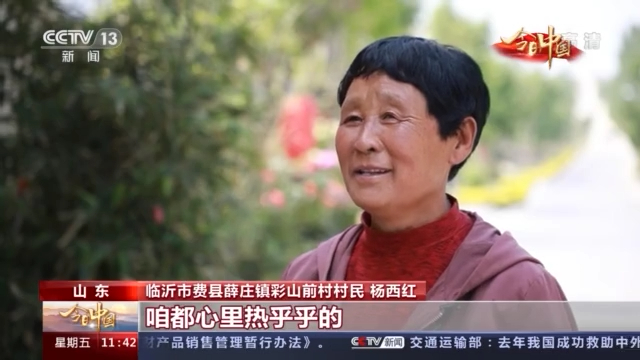 山东省临沂市费县薛庄镇彩山前村村民 杨西红:两个第一书记来到我这个村,给我打造成这个样,特别是我这个农家乐,谁来谁说这是个宝地,咱都心里热乎乎的。