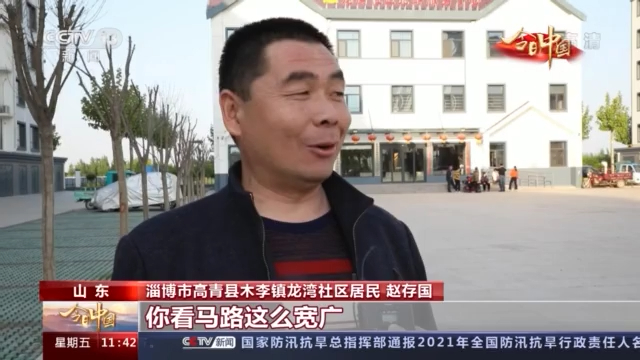 山东省淄博市高青县木李镇龙湾社区居民 赵存国:现在搬出来以后,你看马路这么宽广,小区这个配套设施这么方便,享福了。