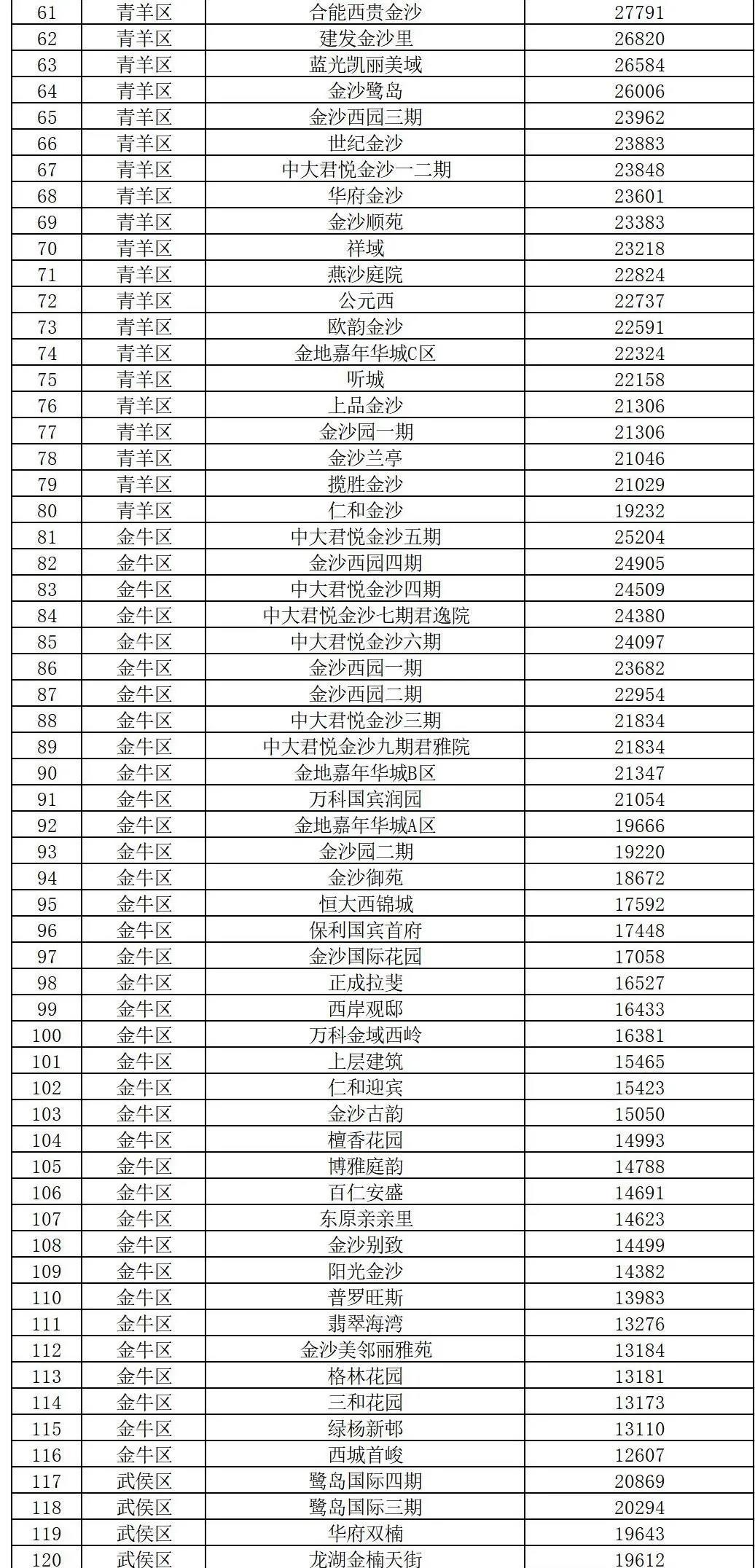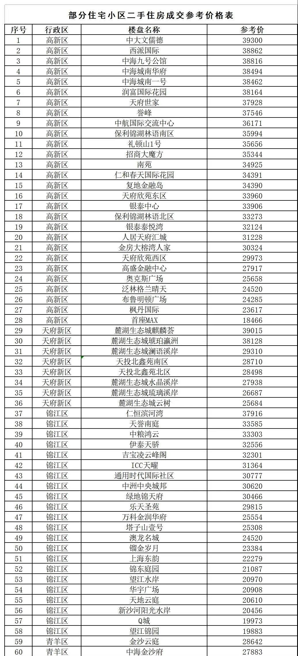 与此同时,28日,成都市城市建设发展研究院已正式发布成都市部分住宅小区二手住房成交参考价格。