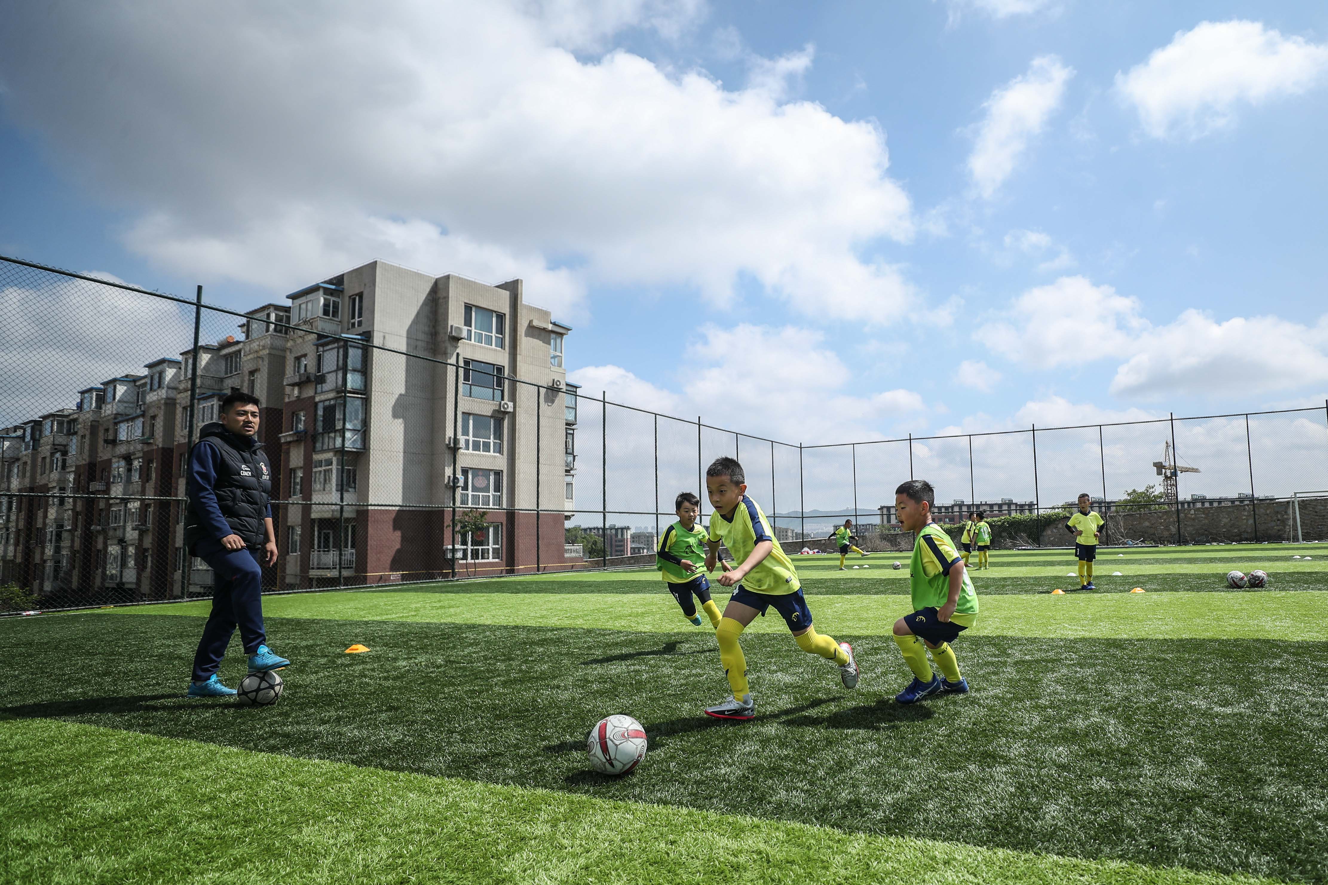 2020年5月19日,大连龙卷风俱乐部U8年龄组的小球员在进行训练。新华社记者潘昱龙摄