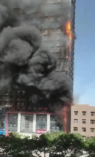 河北一高层建筑发生火灾 现场浓烟滚滚