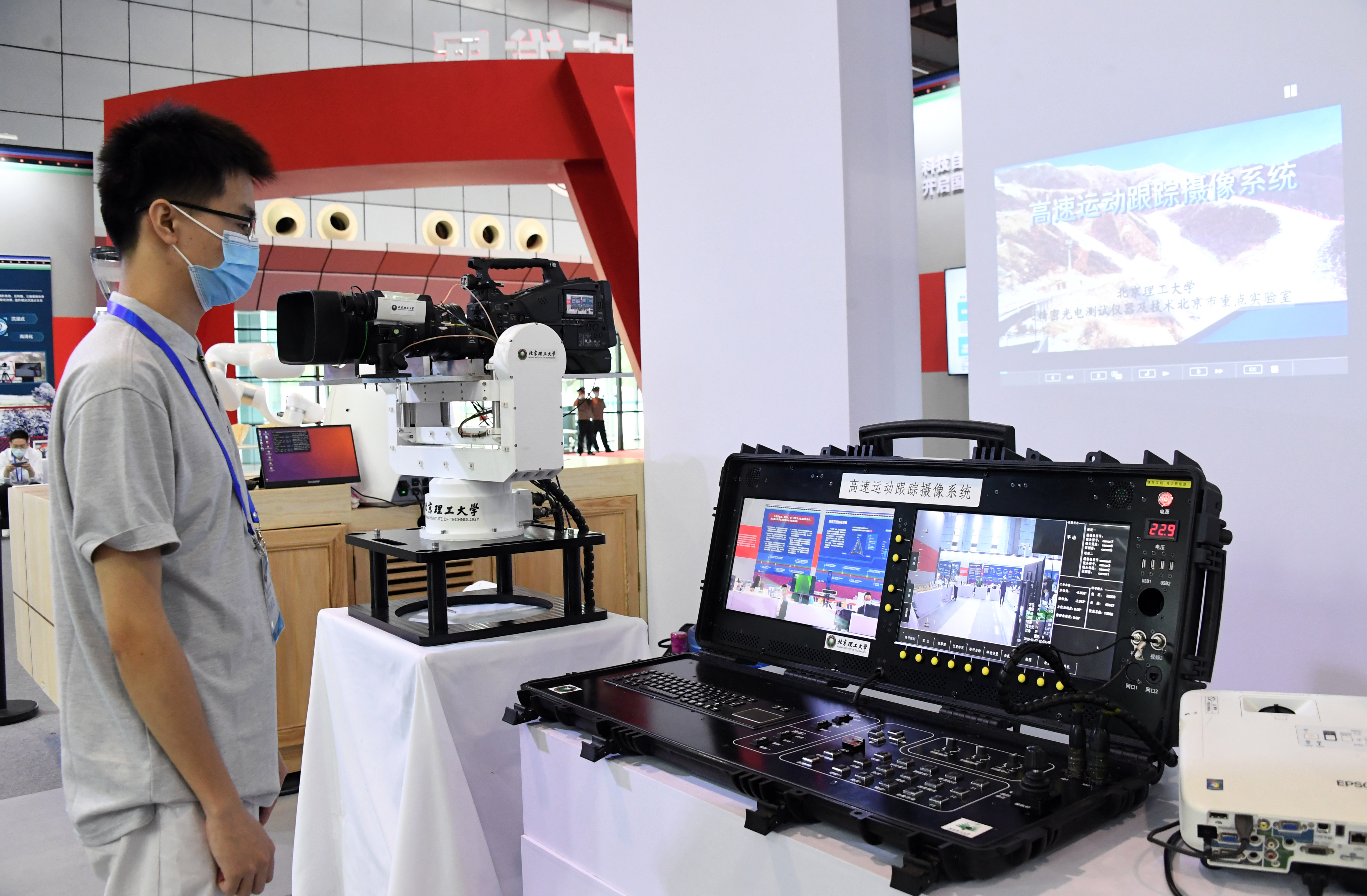 图为工作人员在北京科技周活动主场室内主题展区展示高速运动跟踪摄像系统。新华社记者任超摄
