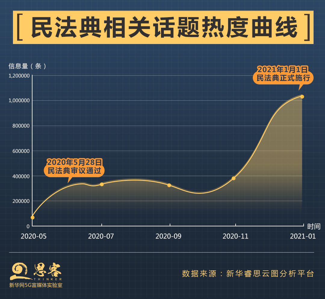 从审议通过到正式施行,民法典相关话题热度整体呈上升趋势。