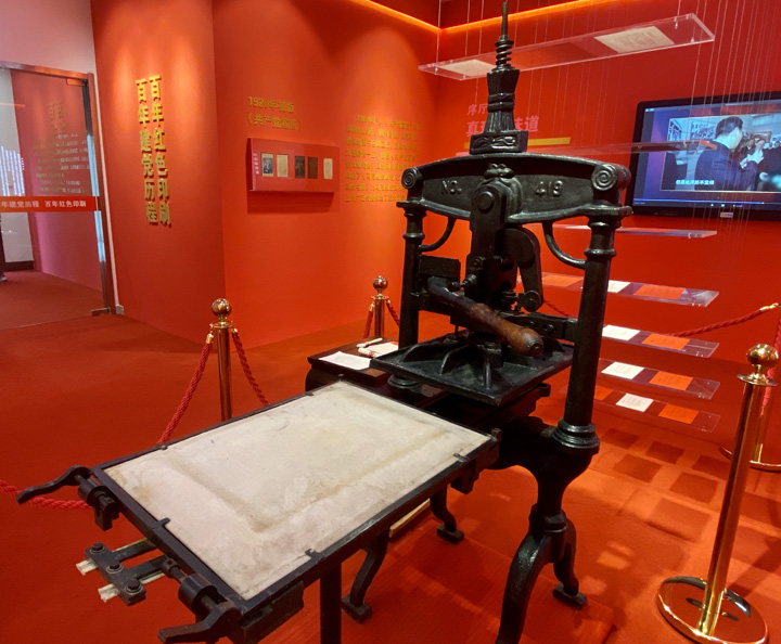 这一场景是27日在上海中华印刷博物馆开幕的“红色印记——庆祝中国共产党成立100周年专题展”的一幕。从这台印刷机开始,展览呈现了中国共产党领导下的“红色印刷”发展历程。