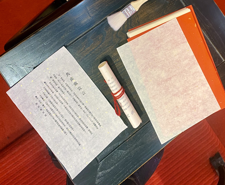 将纸张放在印刷机正中间的印板上,摇动转轮,一推、一拉,一页由参观者亲手仿制的《共产党宣言》中文全译本第一页就压印而成。