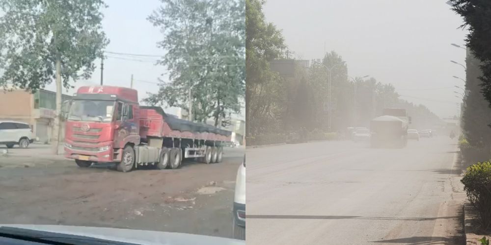 记者在现场采访时看到,原本平坦的339国道现在已经破烂不堪,驱车行驶在部分路段,明显有颠簸感。装载瓷砖、煤炭的大货车和工程车辆频繁往来。由于部分路段路基破损严重,车辆经过时会扬起风沙,沿途村庄很多房屋窗户上都积了一层灰。