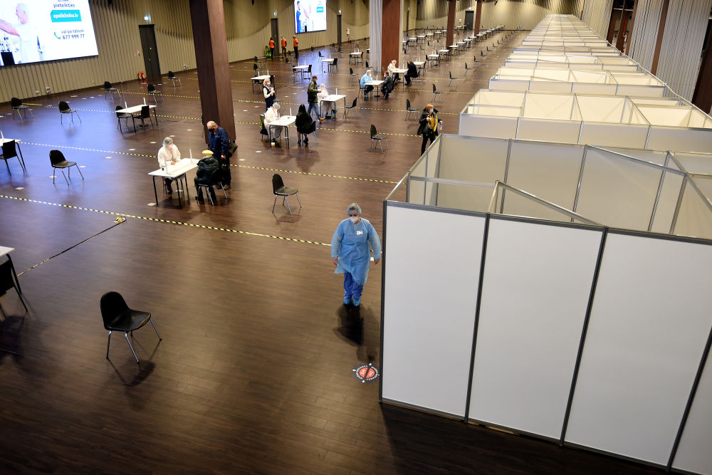 这是4月3日在拉脱维亚首都里加拍摄的一个会议中心改建的新冠疫苗接种中心。(新华社发,埃迪斯·帕伦斯摄)