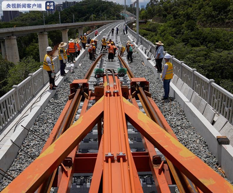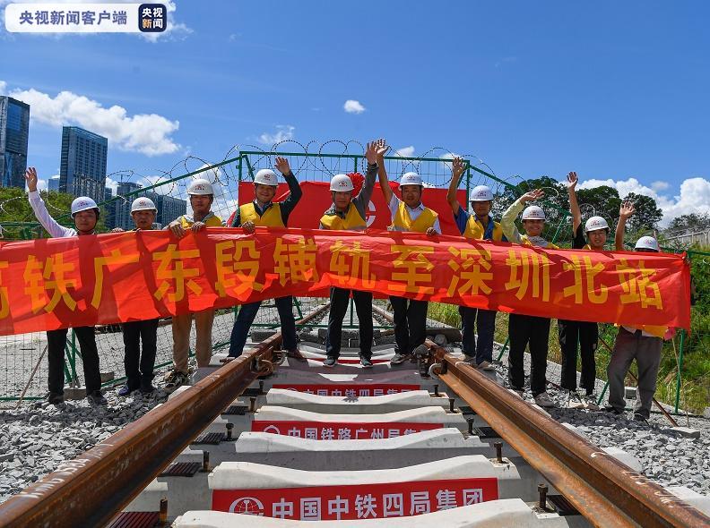 5月27日10时,随着最后一组500米长轨铺设完成,标志着由中铁四局施工的赣(州)深(圳)高铁广东段铺轨接入深圳北站,至此赣深高铁广东段正线铺轨完成80%。