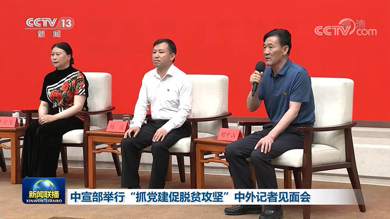 央视网消息(新闻联播):中共中央宣传部今天(5月28日)举行“抓党建促脱贫攻坚”中外记者见面会,邀请刘双燕、毛相林、陈望慧、杨波、胡中山等5位来自脱贫攻坚一线的基层党支部书记,围绕带领百姓脱贫致富、接续推进乡村振兴等话题,与中外记者进行交流。