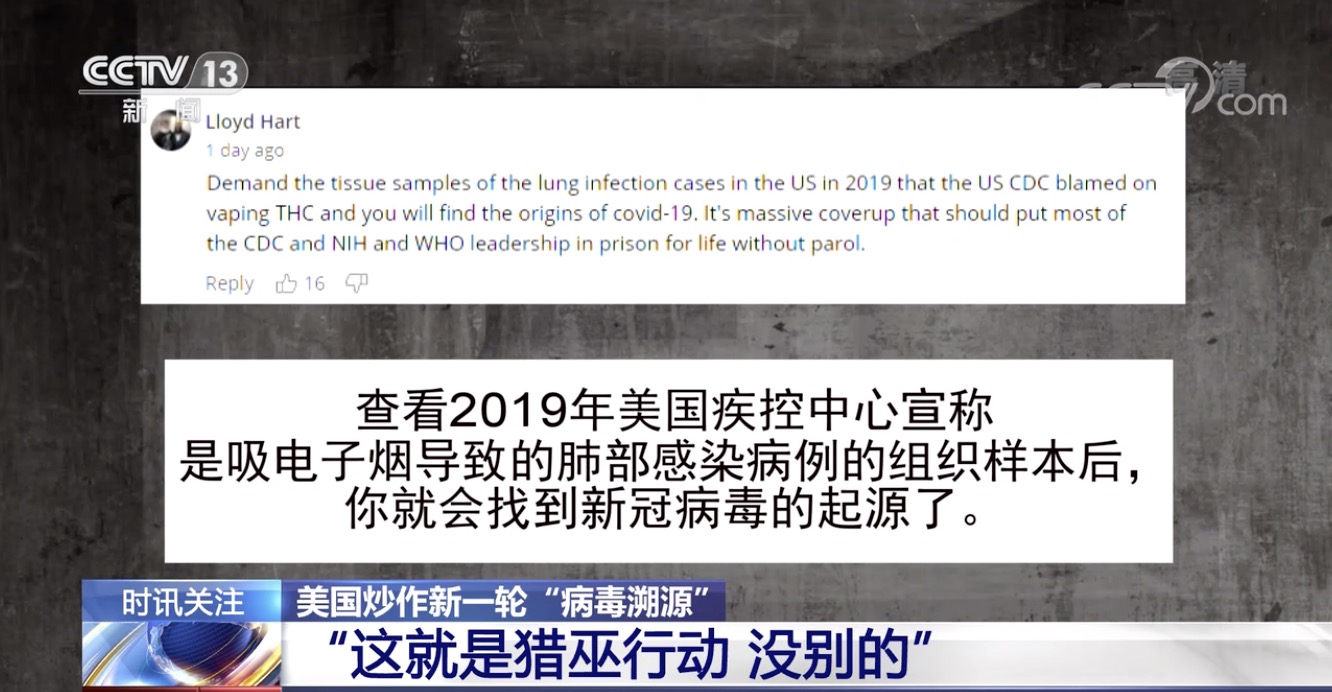 有网友直言,美国在炒作新一轮“病毒溯源”调查前,最好先查清2019年在美国多地暴发的“电子烟疾病”究竟有什么隐情。