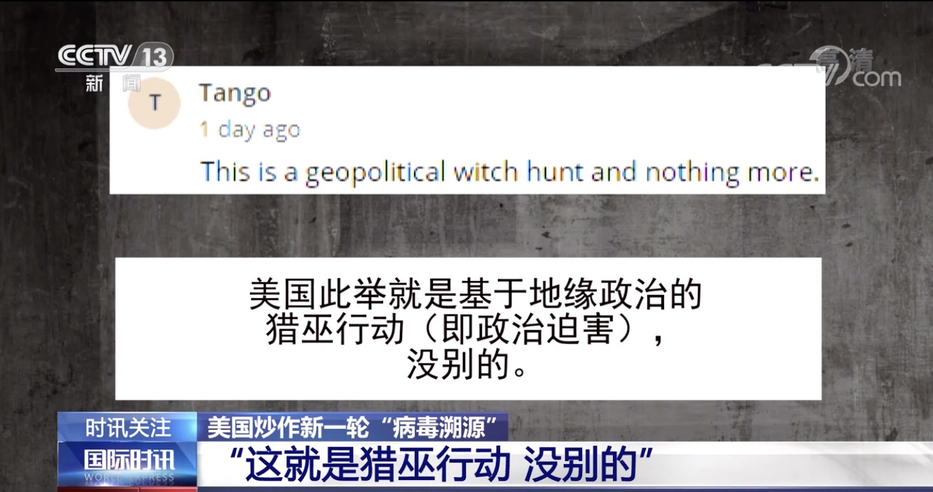 还有网友质疑,美国情报部门的黑历史早已世人皆知,当年他们把一小瓶洗衣粉当作伊拉克大规模杀伤性武器证据的历史仍历历在目。近日,美国又企图动用情报力量来搞所谓“溯源调查”,其动机和目的一目了然。