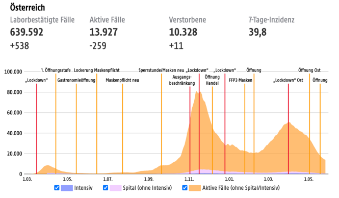 从6月10日开始,宵禁时间从22时推迟到24时,这也意味着奥地利人将可以在酒吧里观看从6月11日开始的欧洲杯足球比赛。餐馆的强制关门时间也将从22时推迟到24时,而且室内每桌的就餐人数限制将从现在的4人增加到8人,室外每桌最多允许16人就餐。另外,零售业可以接待的人数限制、室外佩戴口罩的规定等也将被放宽。
