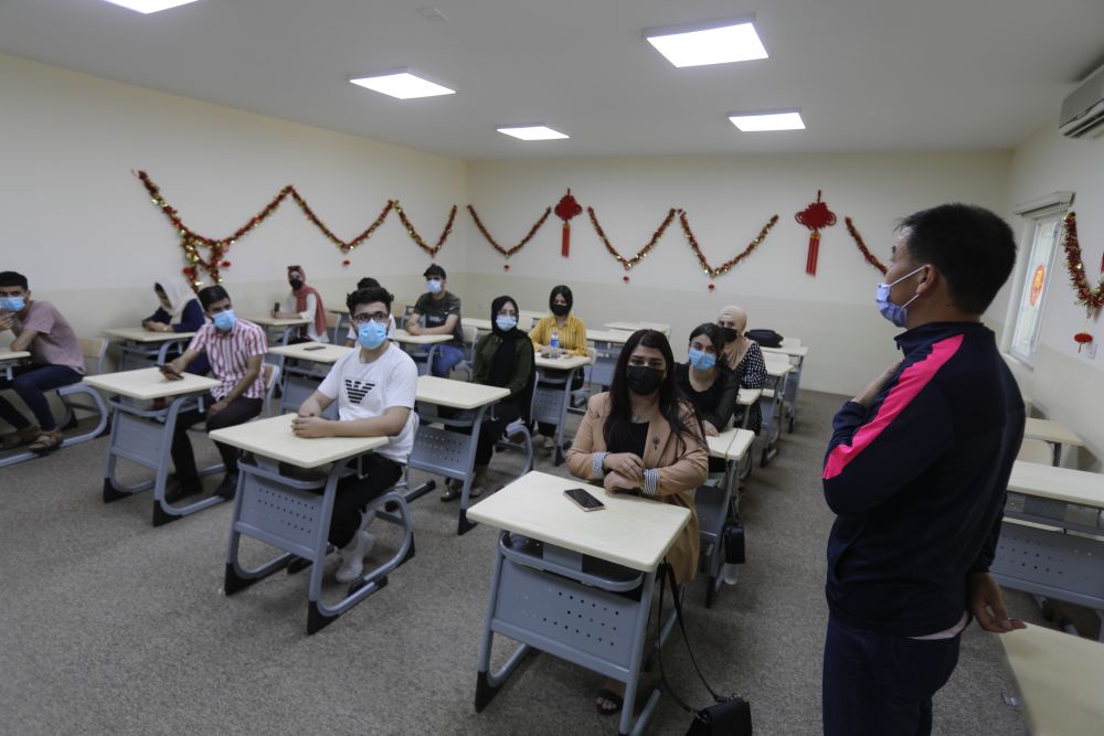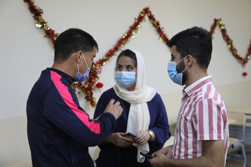中国国家汉办派出的教师胡志伟说,作为伊拉克首个中文系,学生们大多来自伊拉克库区,甚至还有来自叙利亚的难民学生。新冠疫情的暴发彻底打乱了他们的学习节奏,从大一下学期开始,上网课学中文成为学生们的常态。一些学生家里最初没有网络,老师们就通过打电话授课。