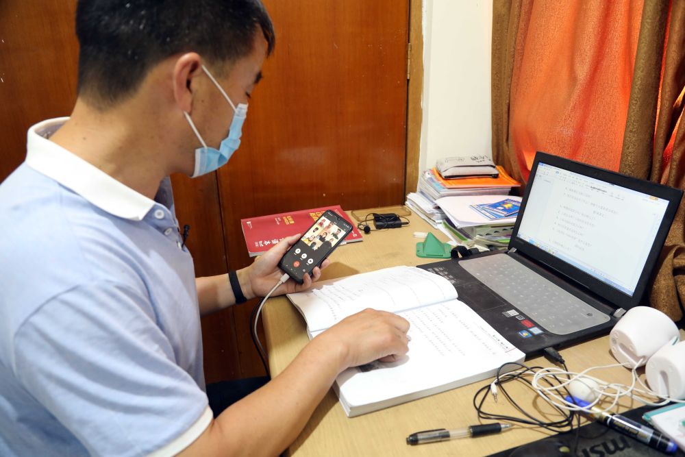 5月19日,教师胡志伟在伊拉克埃尔比勒市为学生上网课。新华社发
