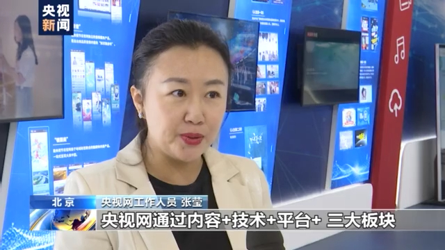 央视网工作人员 张莹:央视网通过内容+技术+平台+三大板块,展示及探索新闻加政务、服务、商务模式转型中打造的多个成功的产品与案例,其中既有中央广播电视总台的网络春晚等丰富的视听品牌,也有面向政企及行业用户的“云数智”特色产品线,特别值得一提的是总台8K频道播出试验,也在央视网的展位进行了呈现。