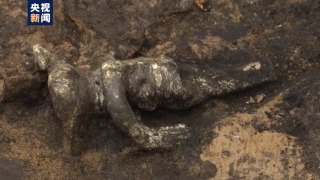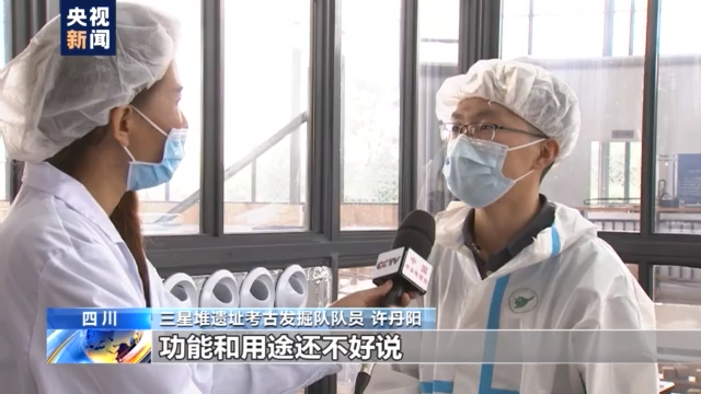 三星堆遗址考古发掘队队员 许丹阳:头部都连接了一个长条形的铜器,而在坑内也发现了一些散落在其它地方的这样长条形的铜器,也就是说他们的头部是连接着另外的构件的。我们推测,它们三个可能是一个复杂一点的组合铜器的三个部分,有可能和坑内其他一些破碎的铜片能够拼接起来,这也是我们今后的一个关注的目标吧,希望能够进行一定程度的复原。