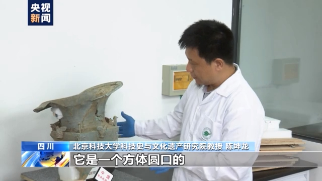 北京科技大学科技史与文化遗产研究院教授 陈坤龙:像它这种纹饰这都是这个时期青铜器上很常见的纹饰,但它的一个特殊性就是,它是一个方体圆口的,我们见过圆尊也见过方尊,然后这种方体圆口的这种尊我们很少见到。