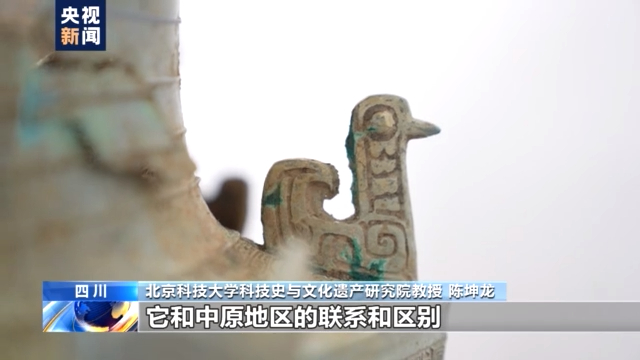 北京科技大学科技史与文化遗产研究院教授 陈坤龙:我们为什么要讨论它的铸造工艺,因为铸造工艺是当时的一种技术包括当时的铸铜匠人,他的一种技术能力的一种证据,所以说我们要关心,这些细节的这种做法他是怎么处理的。我们除了看纹饰以外,我们看看同样一个兽头三星堆的人是怎么做的,安阳人是怎么做的,就可以观察三星堆和中原地区的联系和区别。我们所谓的联系和区别,事实上都是通过这样一点点小的知识点、小的信息点来把它构架起来的。