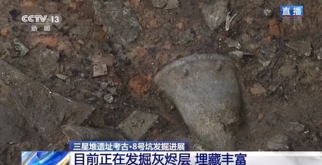 据蔡宁介绍,8号坑发现众多三星堆遗址之中的典型器物,前几天刚刚发现一个像喇叭型口的器具,目前还不确定它是一个什么样的青铜器,目前还没有见到过和它的形状完全一致的青铜器。如果这个坑的一些碎片能够和其它几个坑的器物拼合的话,对这几个坑的形成研究就能有很大的突破。