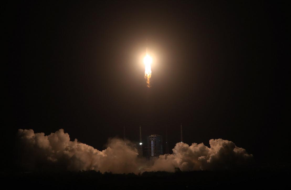 5月29日20时50分许,在中国文昌航天发射场,发射天舟二号货运飞船的长征七号遥三运载火箭已经点火起飞。