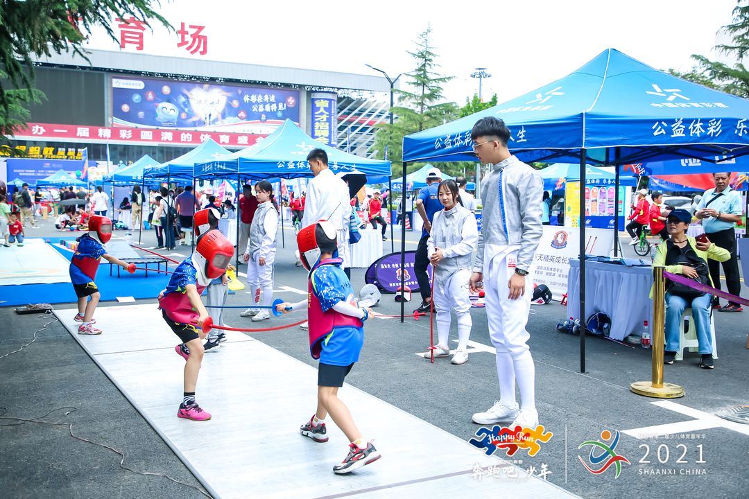 陕西主会场以“我奔跑,我快乐,全运因我更精彩”为口号,活动现场设置了趣味体育体验区、体育科技体验区、少年儿童公益体测区和体育文化领略区。除“足篮排乒羽”外,体验区还设置了击剑、射箭、棒垒球、拳击、跆拳道等奥运项目,以及轮滑、棋牌等非奥项目及智力类项目,让少儿在体验中掌握基本技能、培养体育兴趣。