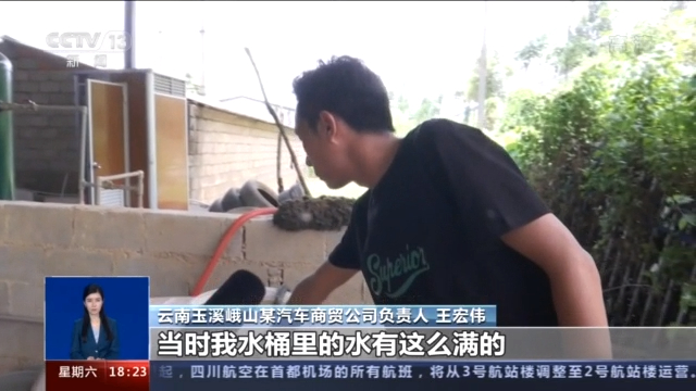 云南玉溪峨山某汽车商贸公司负责人 王宏伟:从这里下来,下来后来水桶里面喝了点水,当时水桶里的水有这么满的,水全部被喝光了。